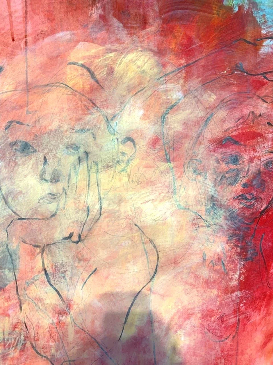 This painting explores my spiritual mind by depicting the expression and gesture from multiple viewpoints. The relaxed brushwork will represent my mood during the creation process and I usually ignore that I embody mixed and rich emotions when I am creating the works. There are enthusiasm and pleasure, frustration and hesitation. Thus, I depicted the moments and demonstrated them by forming a 360-degree view on a 2D painting.
