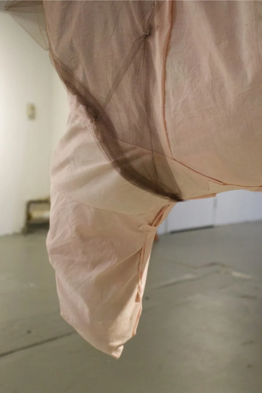 Cotton, mesh, pattern paper, thread